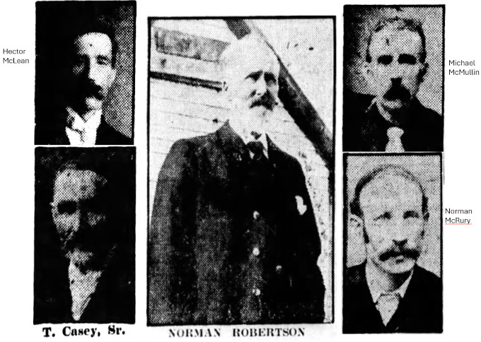 Norman Robertson was born in Big Glace Bay in 1853, and started work there in 1868. He went on to work at coal mines in Schooner Cove, Lingan and Caledonia. He started working at the Dominion No. 6 mine when it opened in 1904 and worked there until he retired in 1926 after 57 years of service.