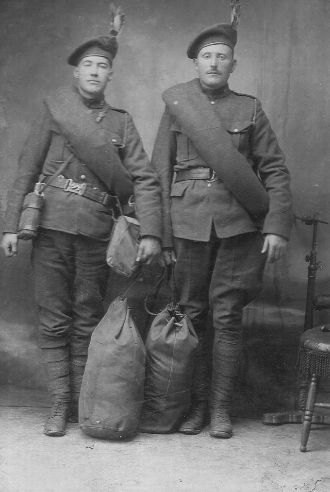McIsaac and Taylor were mining buddies and on March 19, 1916, they enlisted together with the 193rd Battalion (Nova Scotia Highlanders) at Stellarton. The photo below shows the two friends, with McIsaac on the left and Taylor on the right.