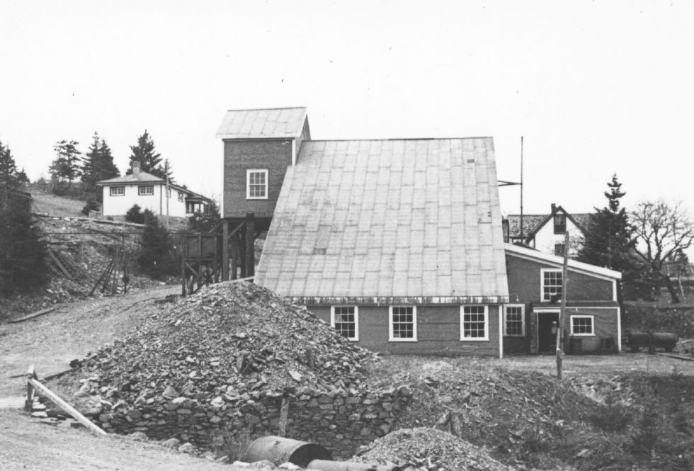 Stamp mills at Oldham's Acadia mine, likely in the 1920s.